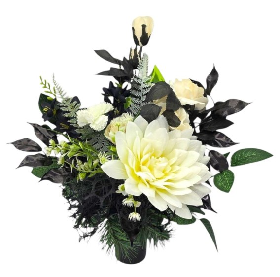 BIAŁO CZARNY BUKIET WKŁAD DO WAZONU KWIATY NA CMENTARZ GRÓB POMNIK