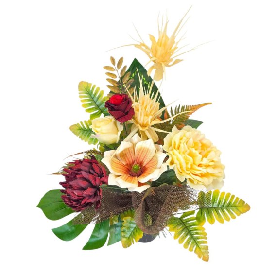 💚Stroik cechuje się unikalną kompozycją sztucznych kwiatów. Starannie dobrane kwiaty są niezwykle realistyczne, dodając wiązance autentyczności i podkreślając jej uroczysty charakter.