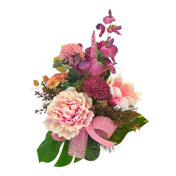 💚Stroik cechuje się unikalną kompozycją sztucznych kwiatów. Starannie dobrane kwiaty są niezwykle realistyczne, dodając wiązance autentyczności i podkreślając jej uroczysty charakter💚