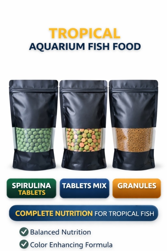 Zestaw pokarmów akwariowych dla ryb tropikalnych, pielęgnic i ryb dennych..
