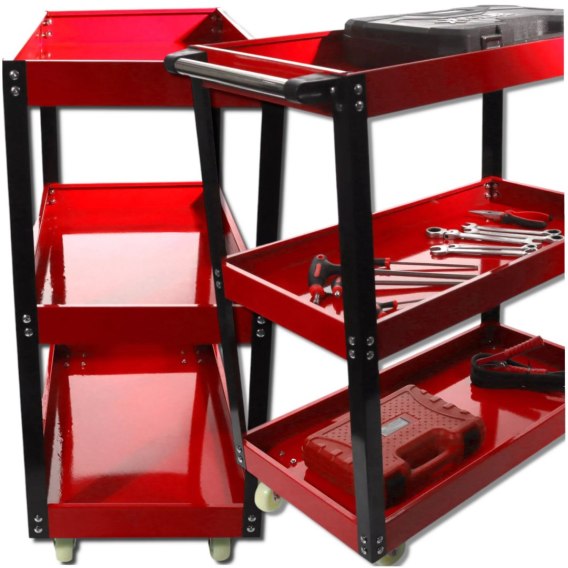 Wózek Warsztatowy Bituxx 3 Półki Mobilny 100 kg Udźwigu Czerwony
