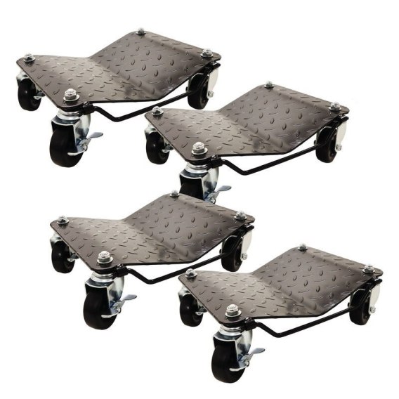 Zestaw 4 pomocy manewrowych o nośności 680 kg każda - kompletne rozwiązanie do bezpiecznego i precyzyjnego przestawiania samochodu osobowego, SUV-a czy lekkiego vana w garażu, warsztacie, na komis czy lawecie.