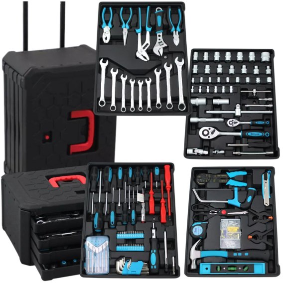 🔧 Wózek Narzędziowy z Wymiennymi Szufladami - 1200 Elementów, Praktyczna Walizka na Kołach Kompletny zestaw narzędzi w wózku z wymiennymi szufladami. Praktyczna teleskopowa rączka i koła zapewniają mobilność. Zawiera 1200 elementów do użytku w domu, garażu i warsztacie.