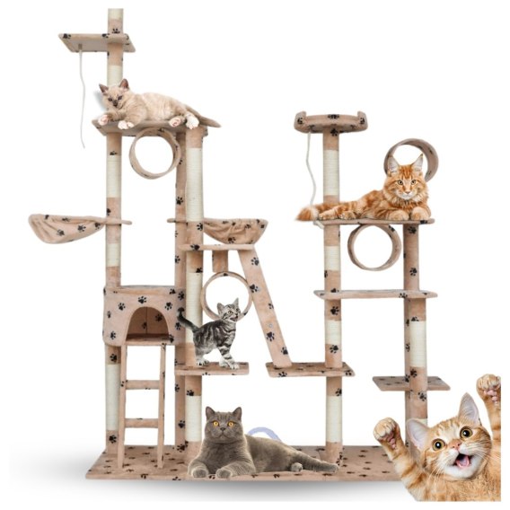 A może Twoje koty potrzebują osobnych miejsc do zabawy i odpoczynku? Nasz drapak XXL to idealne centrum aktywności, które zaspokoi potrzeby każdego kota. Dzięki rozbudowanej konstrukcji z 9 poziomami, licznym legowiskom, hamakom i tubom, Twój futrzany przyjaciel zyska własną, nieograniczoną przestrzeń do zabawy i relaksu. To idealne rozwiązanie dla dużych kotów, aktywnych pupili oraz domów z wieloma czworonogami, a unikalny motyw łapek doda stylu Twojemu wnętrzu.