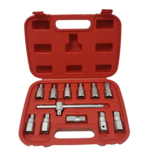 Zestaw kluczy umożliwiający odkręcanie korków olejowych w samochodach większości marek. Wykonany z wysoce trwałej stali chromowo-wanadowej nadaje się idealnie do prac profesjonalnych jak i przydomowego garażu.