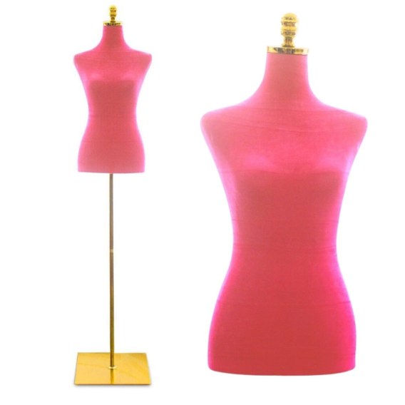 Różowy welurowy tors na złotym stojaku dodaje klasy każdej przestrzeni ekspozycyjnej.