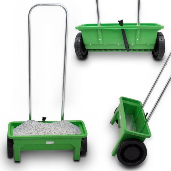 Praktyczny rozsiewacz Bituxx doskonale nadaje się do równomiernego rozprowadzania soli drogowej, nasion, nawozów, piasku i wielu innych.