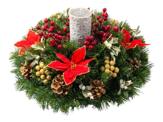 Szukasz dekoracji, która od razu wprowadzi w świąteczny nastrój, doda elegancji stołowi i zachwyci gości? Oto unikatowy stroik handmade, stworzony w polskiej pracowni florystyki. Każdy egzemplarz powstaje ręcznie - z dbałością o każdy detal, dzięki czemu masz pewność, że otrzymujesz produkt wyjątkowy, jedyny w swoim rodzaju.