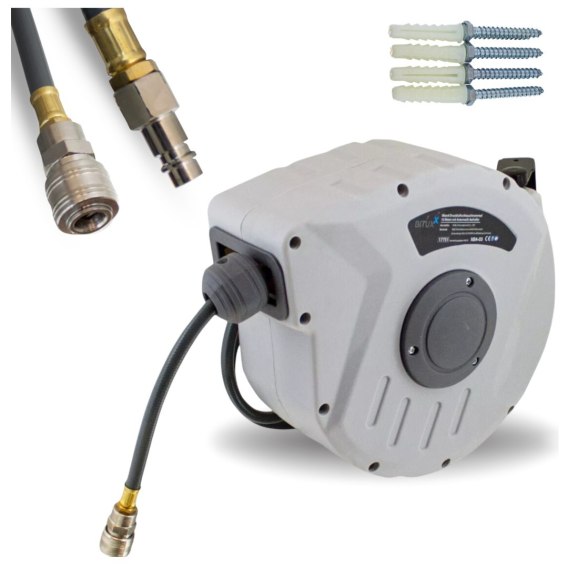 Montaż na ścianie i możliwość obrotu o 180 stopni dają Ci pełną swobodę. Możesz dotrzeć do każdego zakątka warsztatu bez ograniczeń, a wąż nie będzie już przeszkadzał w codziennych zadaniach. W zestawie znajdziesz wszystkie potrzebne elementy, więc montaż jest prosty i szybki.