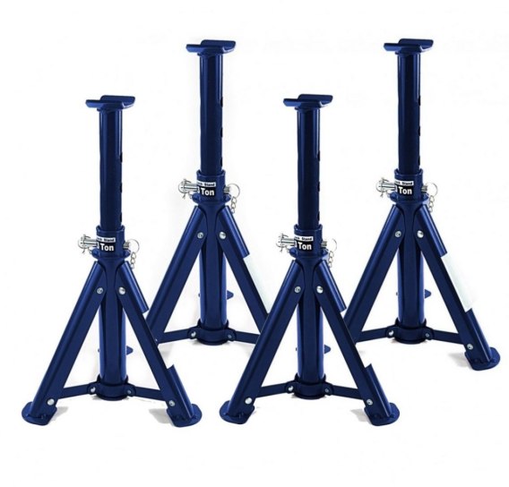 Nasze stojaki posiadają czterostopniową regulację wysokości co pozwala na wybranie dogodnej wysokości. Kobyłki będą pomocne przy zmianie opon lub zmianie kół oraz napraw. Podpory będą pełniły swoją funkcję zarówno w profesjonalnym warsztacie, domowym lub w trasie. Dzięki Naszym stojakom będziesz mógł bezpiecznie podnieść pojazd.